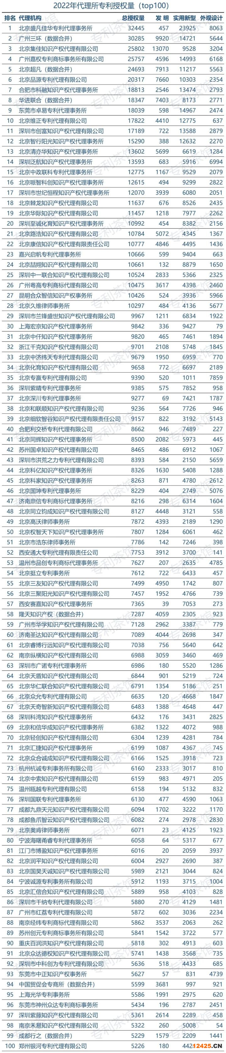 核心提示:2023年代理所專利授權(quán)量排行榜