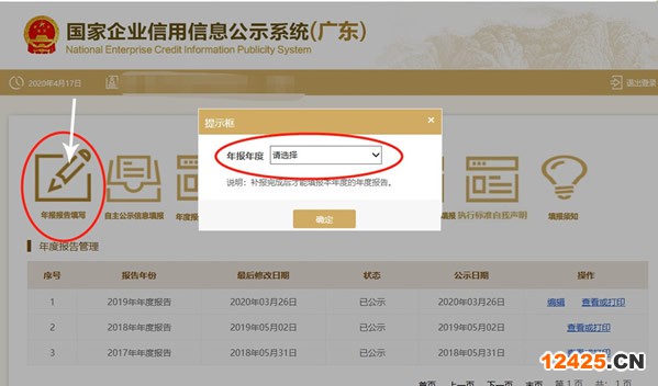 4.點(diǎn)擊年度報(bào)告填寫(xiě),并選擇年份;注意,以前年度未填報(bào)的需要先填報(bào)以前年度。