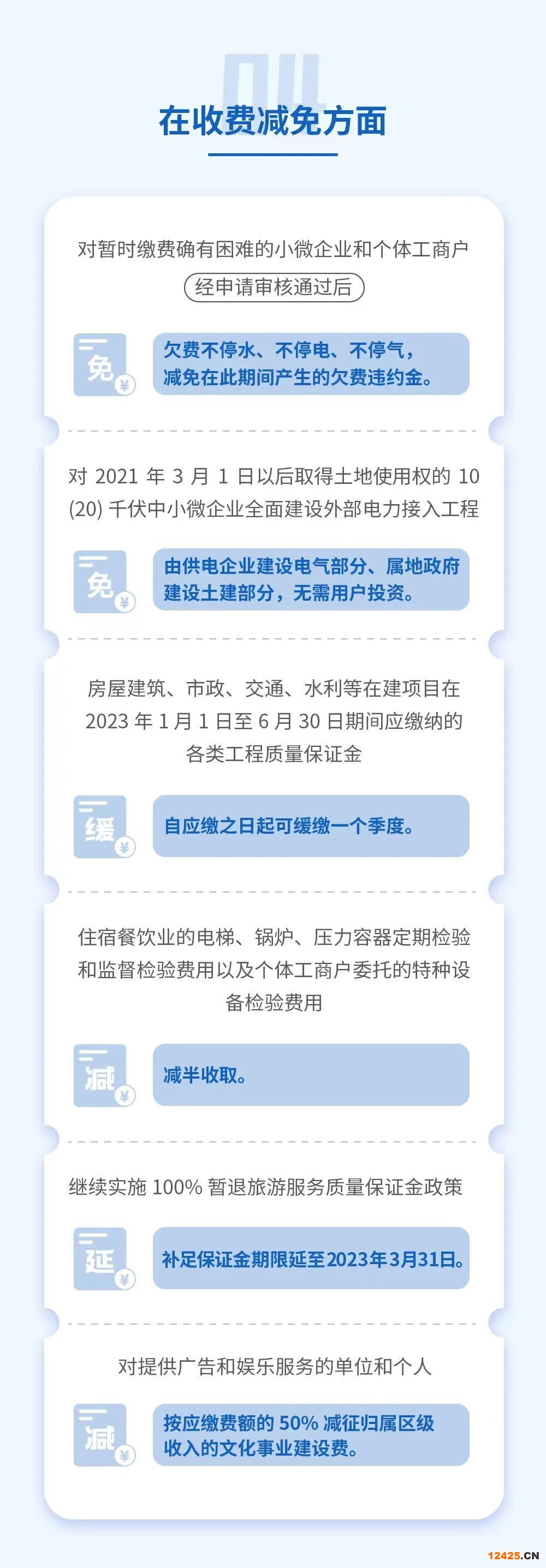 30. 完善區(qū)文體旅產(chǎn)業(yè)高質(zhì)量發(fā)展扶持政策,重點(diǎn)支持?jǐn)?shù)字文化、文化旅游、工藝美術(shù)等項(xiàng)目,促進(jìn)文旅企業(yè)恢復(fù)發(fā)展、創(chuàng)新發(fā)展。繼續(xù)實(shí)施100%暫退旅游服務(wù)質(zhì)量保證金政策,補(bǔ)足保證金期限延至2023年3月31日。對(duì)提供廣告和娛樂(lè)服務(wù)的單位和個(gè)人,按應(yīng)繳費(fèi)額的50%減征歸屬地方收入的文化事業(yè)建設(shè)費(fèi)。(責(zé)任單位:區(qū)文體廣電和旅游局、區(qū)財(cái)政局、吳江稅務(wù)局)
