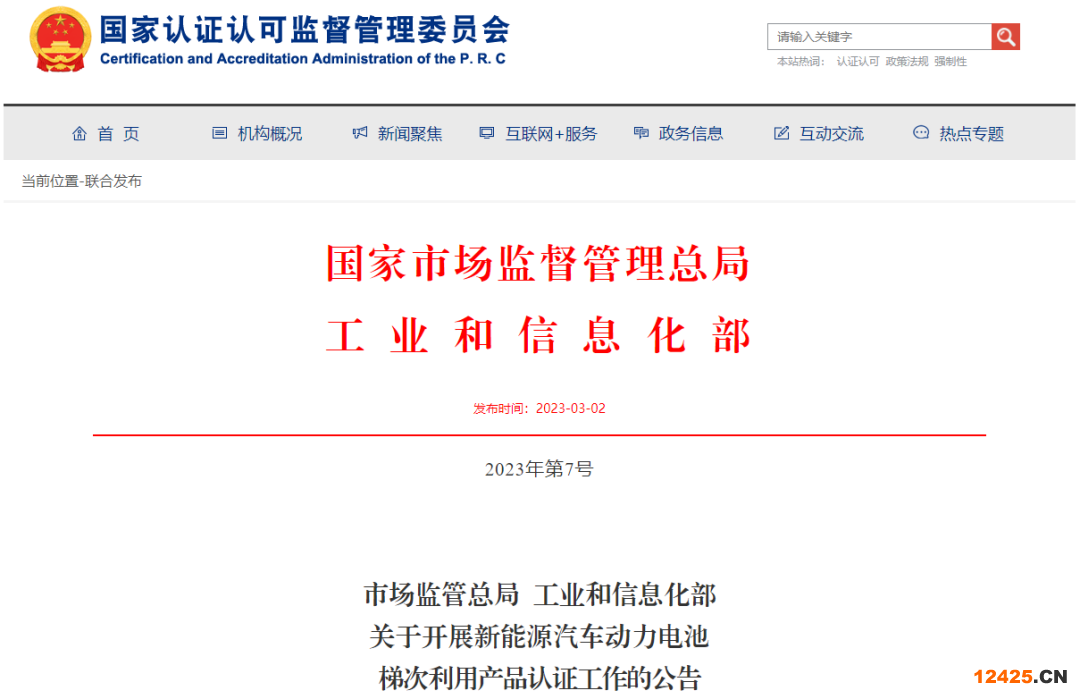 近日,市場監(jiān)管總局、工業(yè)和信息化部發(fā)布公告,決定開展新能源汽車動力電池梯次利用產(chǎn)品自愿性認證工作,健全動力電池梯次利用市場體系,促進動力電池梯次利用行業(yè)健康有序發(fā)展,具體內(nèi)容如下: