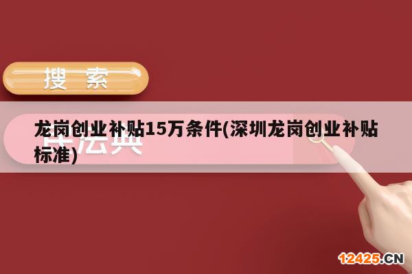 龍崗創(chuàng)業(yè)補貼15萬條件(深圳龍崗創(chuàng)業(yè)補貼標準)