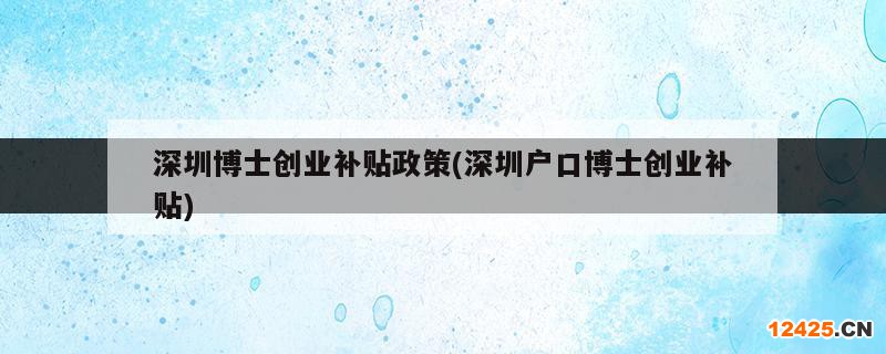 深圳博士創(chuàng)業(yè)補(bǔ)貼政策(深圳戶口博士創(chuàng)業(yè)補(bǔ)貼)