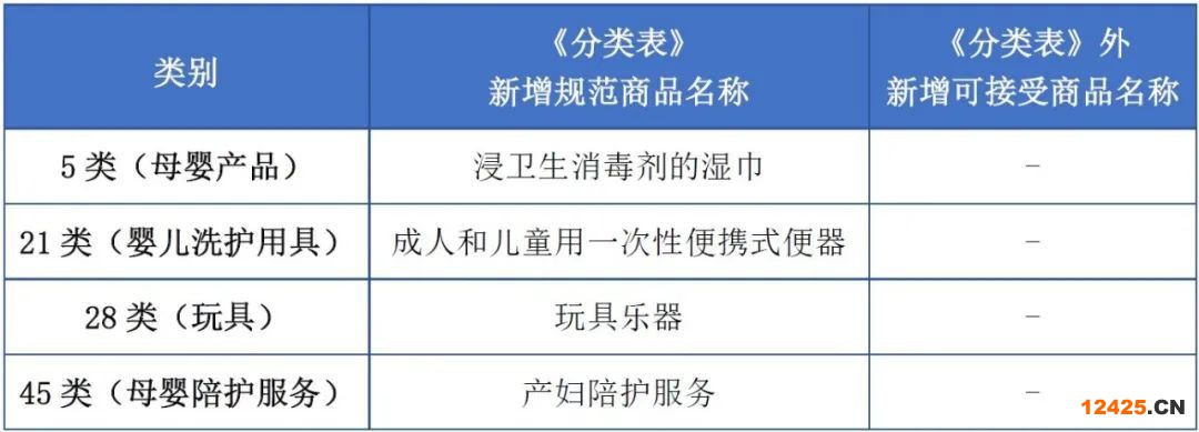 2023年《分類(lèi)表》第30類(lèi)調(diào)味品類(lèi)別中“肉豆蔻”修改為“肉豆蔻(調(diào)味品)”,“發(fā)面團(tuán)用酵素”修改為“生面團(tuán)用酵素”,“家用嫩肉劑”修改為“烹飪用嫩肉劑”,“食用芳香劑”修改為“食品用芳香劑”,其他新增內(nèi)容見(jiàn)下表。