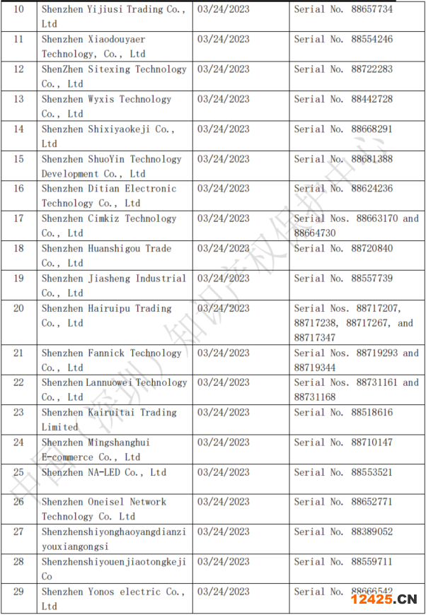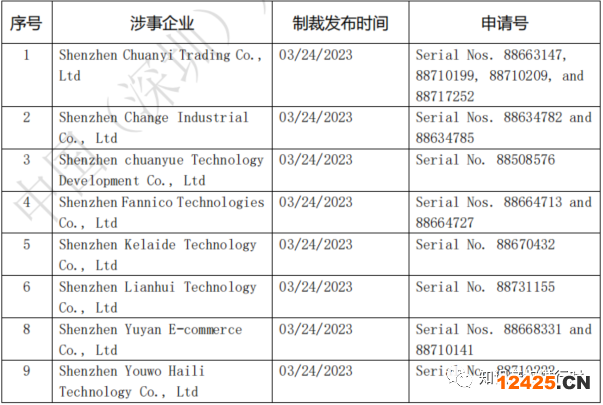 根據(jù)制裁令所述,上述行為嚴(yán)重違反相關(guān)法規(guī),涉事的商標(biāo)申請(qǐng)程序被勒令終止,詳細(xì)信息見(jiàn)下表。