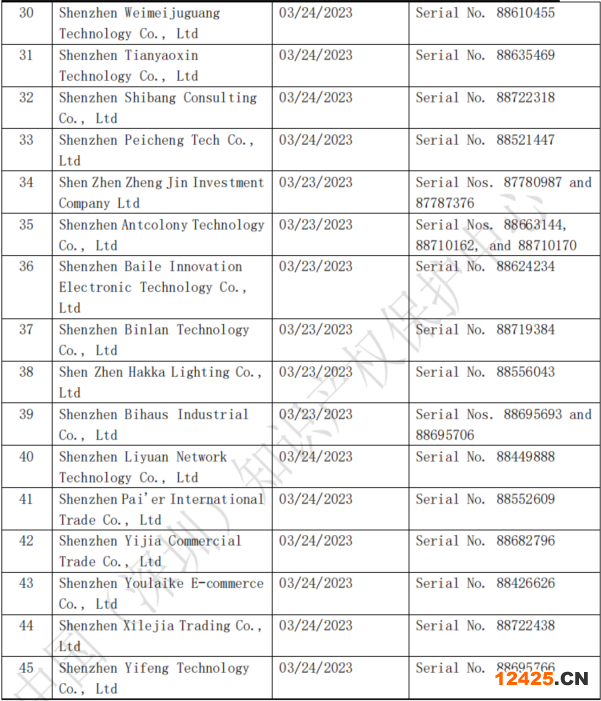 近日,中國(guó)(深圳)知識(shí)產(chǎn)權(quán)保護(hù)中心(以下簡(jiǎn)稱“深圳保護(hù)中心”)監(jiān)測(cè)到若干起涉及深圳企業(yè)的海外商標(biāo)申請(qǐng)異常事件,2023年3月,美國(guó)專利商標(biāo)局(USPTO)在其官網(wǎng)發(fā)布了對(duì)45家深圳企業(yè)的最終制裁令(Final Order for Sanctions),認(rèn)定前述公司實(shí)施了違反美國(guó)專利商標(biāo)局有關(guān)規(guī)定的行為,包括提交的商標(biāo)申請(qǐng)中提供虛假、虛構(gòu)或欺詐性的律師信息和簽名,本次事件涉及60件商標(biāo)申請(qǐng)。