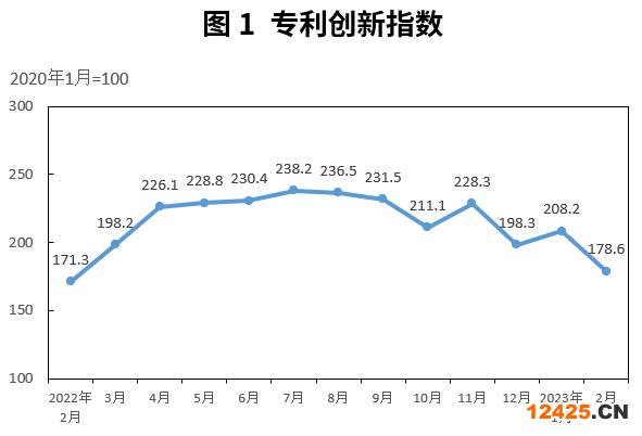 2月份,發(fā)明專利授權(quán)量指數(shù)為261.6,環(huán)比下降17.6%;平均發(fā)明專利授權(quán)量指數(shù)為112.9,環(huán)比下降6.0%。