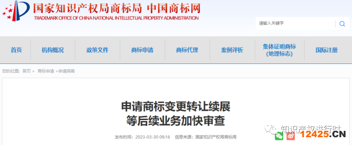 核心提示:近日,國家知識產(chǎn)權(quán)局商標(biāo)局網(wǎng)站發(fā)布《申請商標(biāo)變更轉(zhuǎn)讓續(xù)展等后續(xù)業(yè)務(wù)加快審查》,對市場主體有9種情形之一的,可以辦理【商標(biāo)變更、續(xù)展