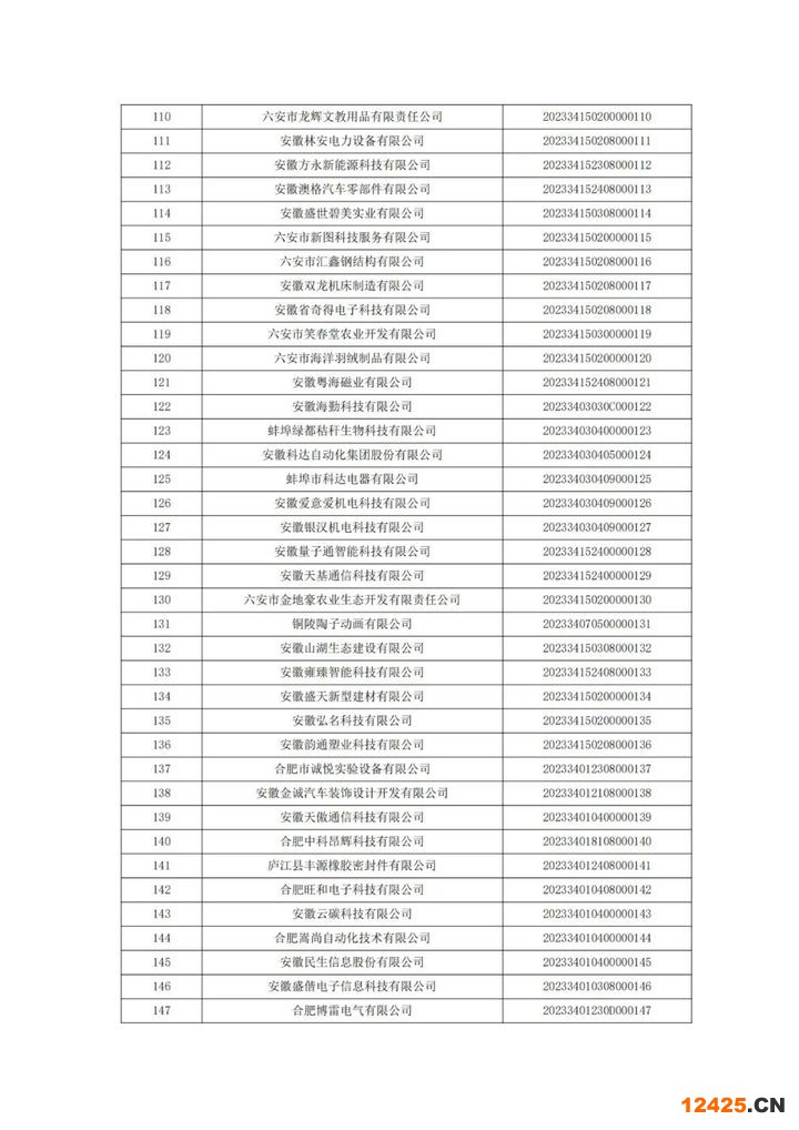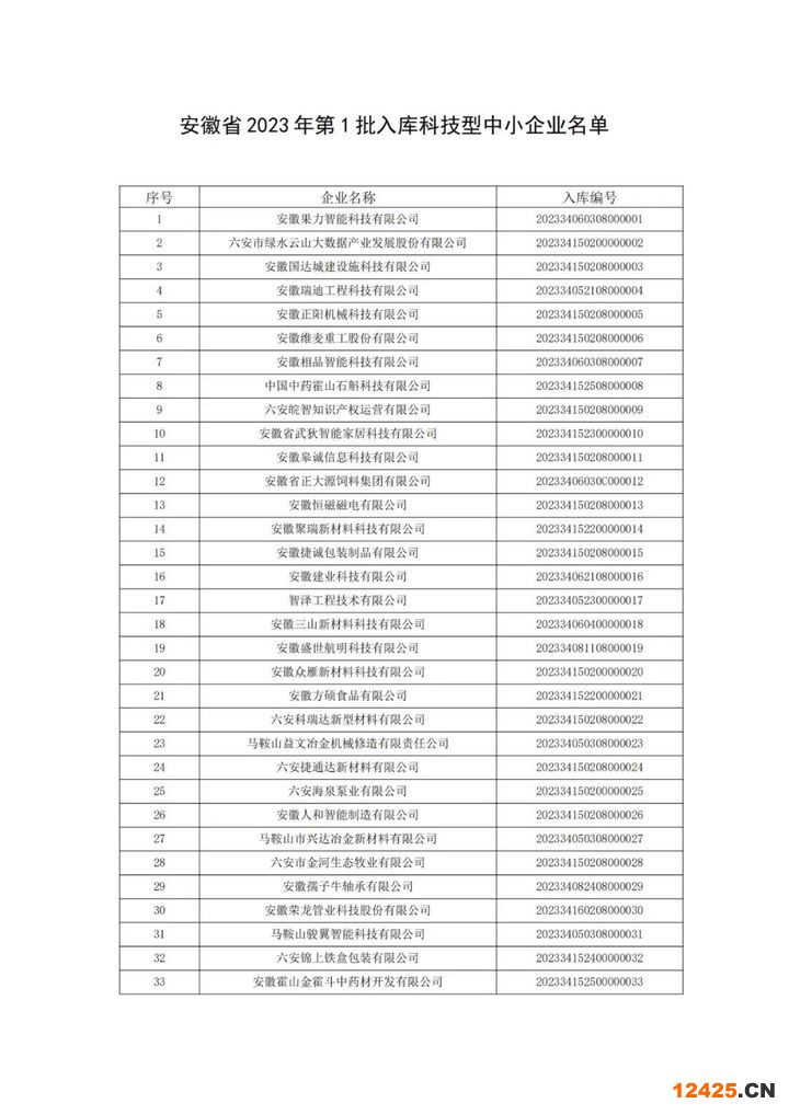關(guān)于安徽省2023年第1批入庫(kù)科技型中小企業(yè)的公告