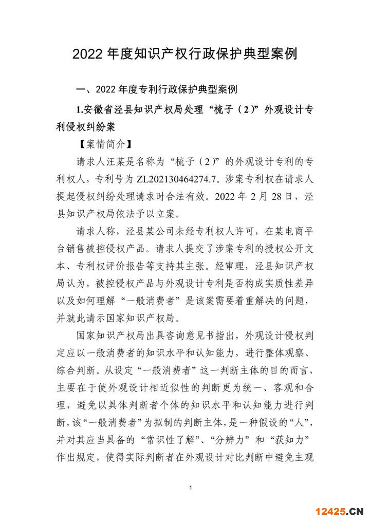 2022年知識產(chǎn)權(quán)行政保護典型案例發(fā)布