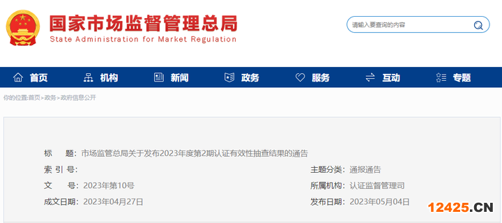 市場監(jiān)管總局關(guān)于發(fā)布2023年度第2期認證有效性抽查結(jié)果的通告