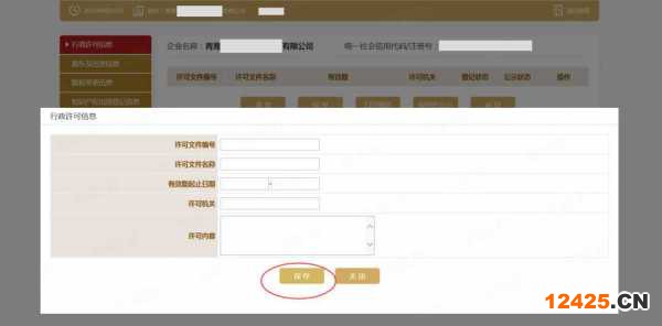 6、第六步:填寫完畢后點擊“保存”。若無行政許可信息,則無需填寫該項。直接填寫下一項。