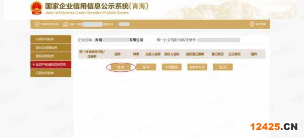 12、第十二步:選擇“知識產(chǎn)權(quán)出質(zhì)登記信息”。點擊“添加”填寫知識產(chǎn)權(quán)出質(zhì)登記信息。