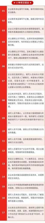 那么,在年報報送的過程中,企業(yè)會出現(xiàn)哪些誤區(qū)?以下是企業(yè)年報抽查中發(fā)現(xiàn)的17種常見錯誤,趕快看看。