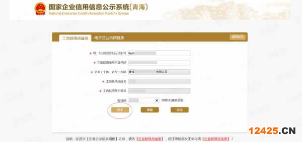 2、點擊“確定”后選擇工商聯(lián)絡(luò)員登陸界面,輸入企業(yè)的相關(guān)信息后,點擊“獲取驗證碼”,輸入收到的驗證碼,點擊“登錄”,進入國家企業(yè)信用信息公示系統(tǒng)(青海)填報頁面。注意,首次填報年報的請先進行工商聯(lián)絡(luò)員注冊。