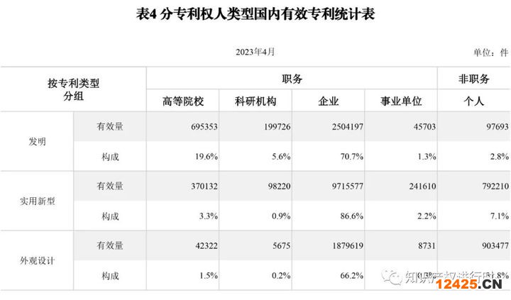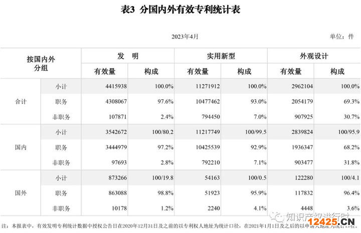 截至2023年4月,三類專利總有效量達(dá)1864.99萬(wàn)件。