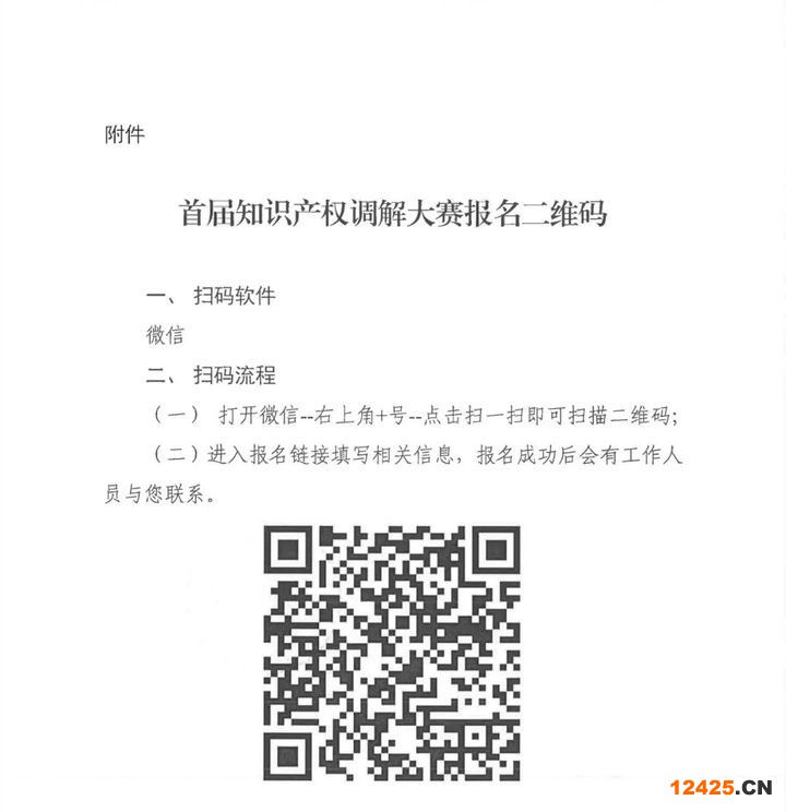 首屆知識(shí)產(chǎn)權(quán)調(diào)解大賽報(bào)名二維碼