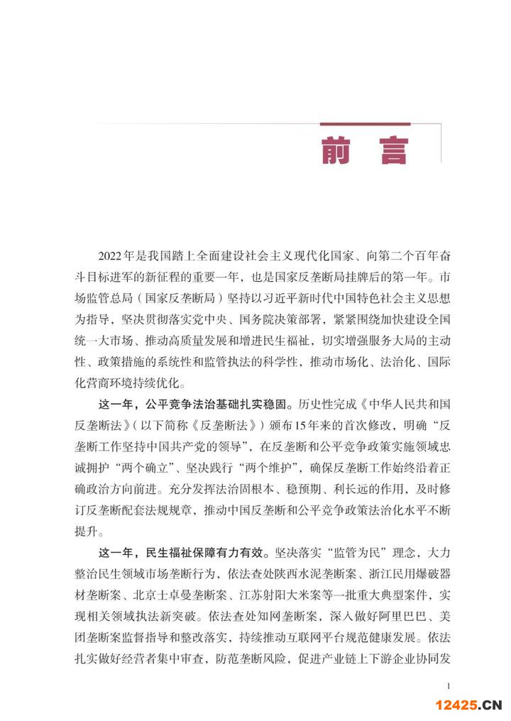 2022年,在以習近平同志為核心的黨中央堅強領導下,市場監(jiān)管總局(國家反壟斷局)堅決貫徹落實黨中央、國務院決策部署,緊緊圍繞加快建設全國統(tǒng)一大市場、推動高質量發(fā)展和增進民生福祉,完成《反壟斷法》頒布15年來的首次修改,加快完善反壟斷配套立法,公平競爭法治基礎更加扎實穩(wěn)固;依法辦結各類壟斷案件187件,罰沒金額7.84億元,審結經營者集中案件794件,其中附加限制性條件批準5件,有力保護市場公平競爭,促進全國統(tǒng)一大市場建設加力提速;舉辦首屆中國公平競爭政策宣傳周和第九屆中國公平競爭政策國際論壇,公平競爭理念更加深入人心,市場化、法治化、國際化營商環(huán)境持續(xù)優(yōu)化。