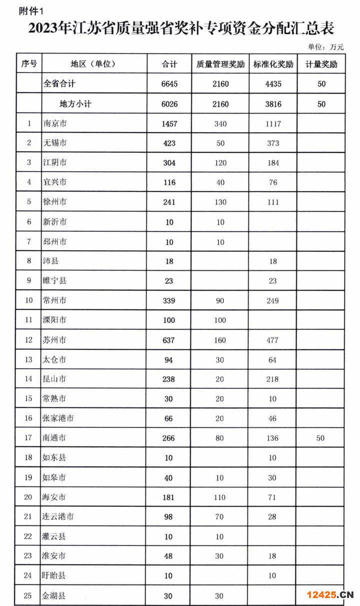 為激勵(lì)企業(yè)創(chuàng)新,促進(jìn)產(chǎn)業(yè)轉(zhuǎn)型升級,全力服務(wù)高質(zhì)量發(fā)展,近日,江蘇省財(cái)政廳會(huì)同江蘇省市場監(jiān)管局下達(dá)2023年度江蘇省質(zhì)量強(qiáng)省獎(jiǎng)補(bǔ)專項(xiàng)資金6645萬元。認(rèn)證君根據(jù)公開表格統(tǒng)計(jì),共有40家公司獲認(rèn)證獎(jiǎng)勵(lì) ,每家10萬!