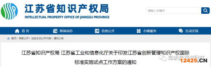 江蘇省知識產(chǎn)權(quán)局 江蘇省工業(yè)和信息化廳關(guān)于印發(fā)江蘇省創(chuàng)新管理知識產(chǎn)權(quán)國際標(biāo)準(zhǔn)實施試點工作方案的通知