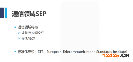 接下來講通信領(lǐng)域的SEP。通信領(lǐng)域有它的一個(gè)特殊性,即實(shí)現(xiàn)這個(gè)設(shè)備跟節(jié)點(diǎn)之間的一個(gè)交互,所以它對(duì)于標(biāo)準(zhǔn)化這有更高的需求。另外一點(diǎn)是移動(dòng)通信的漫游。手機(jī)網(wǎng)絡(luò)需要基站或其他網(wǎng)絡(luò)車設(shè)備輔助,這種情況如果互操作性不好,也就是沒有標(biāo)準(zhǔn)化的話就會(huì)導(dǎo)致不同區(qū)域或不同品牌的產(chǎn)品無法正常使用。