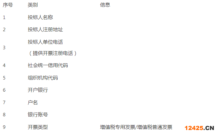 1.本表為招標(biāo)代理機(jī)構(gòu)為投標(biāo)人開具購(gòu)買招標(biāo)文件發(fā)票時(shí)所需信息。