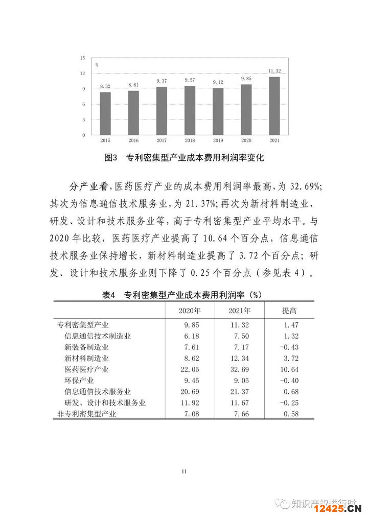 近日,國(guó)家知識(shí)產(chǎn)權(quán)局網(wǎng)站發(fā)布《中國(guó)專(zhuān)利密集型產(chǎn)業(yè)統(tǒng)計(jì)監(jiān)測(cè)報(bào)告(2022)》,2021年全國(guó)專(zhuān)利密集型產(chǎn)業(yè)增加值為142983億元,比上年增長(zhǎng)17.89%;實(shí)現(xiàn)利潤(rùn)總額4.21萬(wàn)億元,比上年增長(zhǎng)36.87%;新產(chǎn)品銷(xiāo)售收入達(dá)到15.81萬(wàn)億元,比上年增長(zhǎng)21.75%。