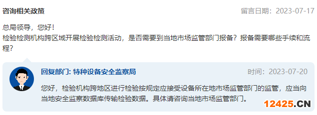 近期,有網(wǎng)友在市場監(jiān)管總局網(wǎng)站公眾留言系統(tǒng)咨詢“檢驗檢測機構(gòu)跨區(qū)域開展檢驗檢測活動”的問題,市場監(jiān)管總局給予了答復(fù)。
