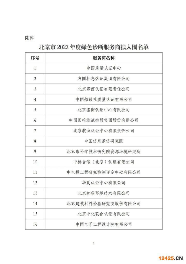 關(guān)于對擬入圍北京市2023年度綠色診斷服務(wù)商進(jìn)行公示的通知