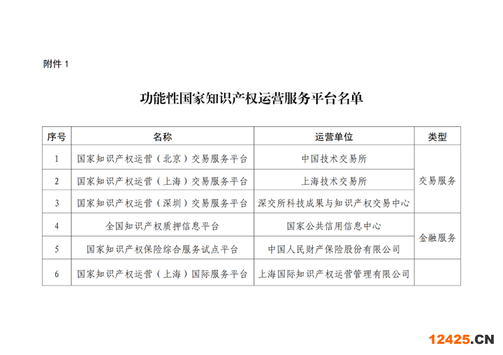 附件1:功能性國家知識產(chǎn)權(quán)運(yùn)營服務(wù)平臺名單