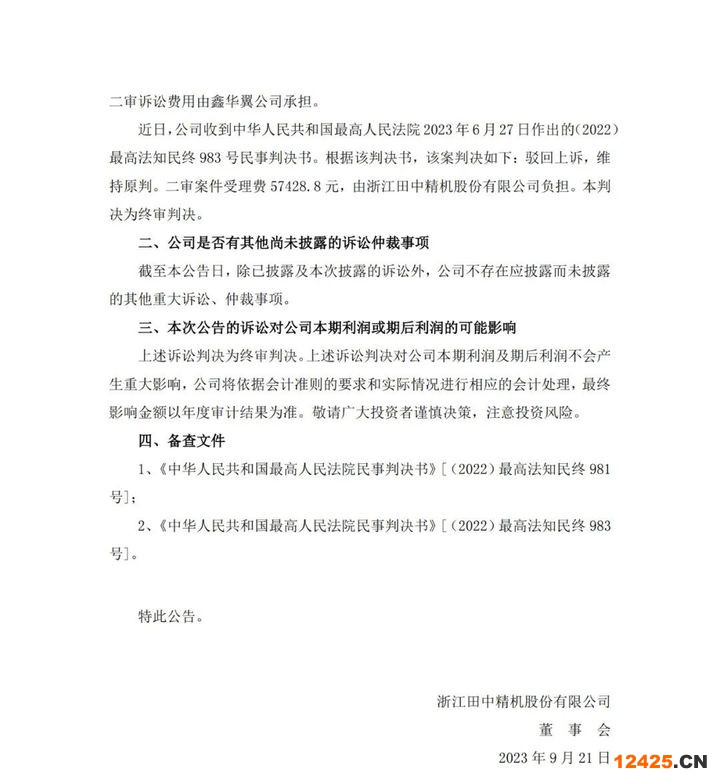 核心提示:2023年9月21日,浙江田中精機股份有限公司(簡稱田中精機)發(fā)布公告公布了兩件專利侵權(quán)案件的終審判決結(jié)果。作為原告,田中精機在兩個案件中