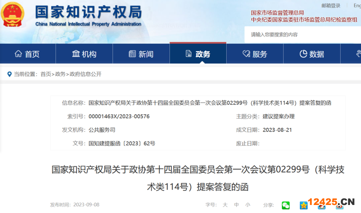 國(guó)家知識(shí)產(chǎn)權(quán)局關(guān)于政協(xié)第十四屆全國(guó)委員會(huì)第一次會(huì)議第02299號(hào)(科學(xué)技術(shù)類(lèi)114號(hào))提案答復(fù)的函