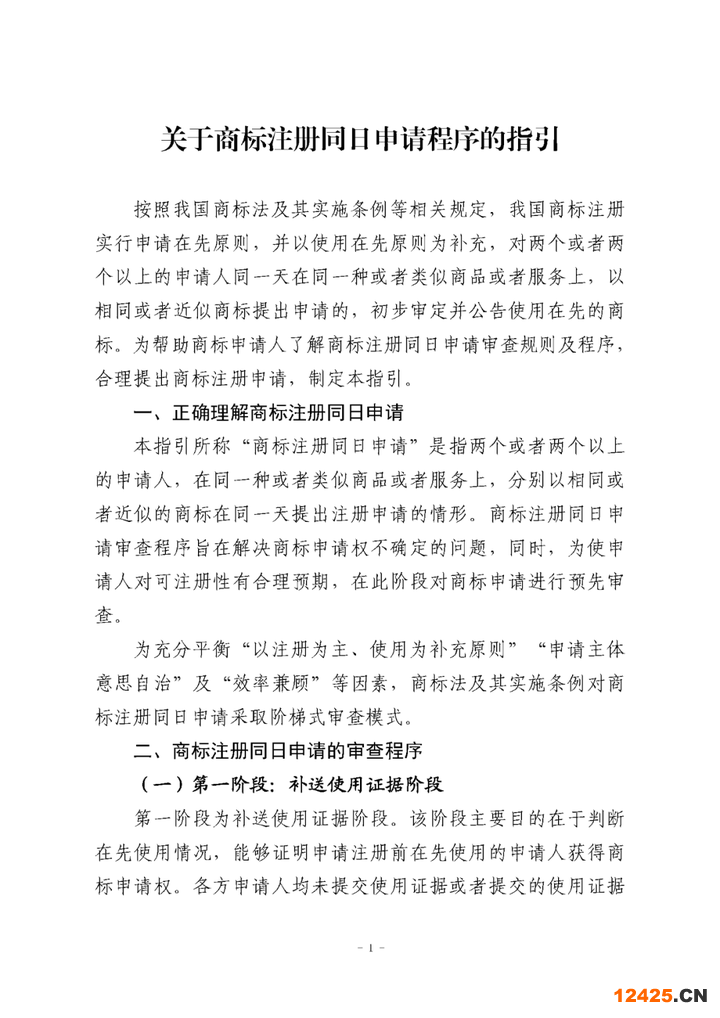 《關(guān)于商標(biāo)注冊(cè)同日申請(qǐng)程序的指引》發(fā)布