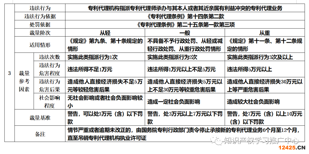 專利代理行政處罰裁量權(quán)基準(zhǔn)表