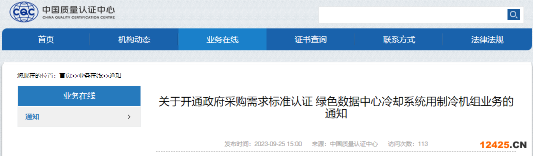 中國(guó)質(zhì)量認(rèn)證中心(CQC)研發(fā)并推出了政府采購(gòu)需求標(biāo)準(zhǔn)認(rèn)證 綠色數(shù)據(jù)中心冷卻系統(tǒng)用制冷機(jī)組業(yè)務(wù)。業(yè)務(wù)信息如下: