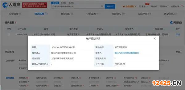 10月9日,根據(jù)天眼查App最新信息,威馬汽車科技集團(tuán)有限公司新增一則破產(chǎn)審查案件。申請(qǐng)人為該公司自身,經(jīng)辦法院為上海市第三中級(jí)人民法院。
