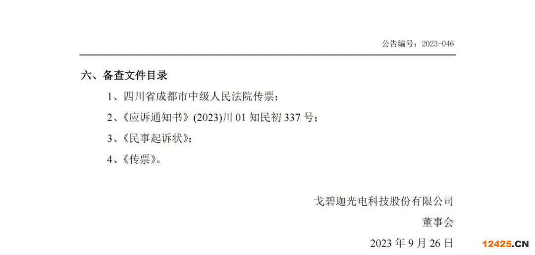 核心提示:9月26日,湖北戈碧迦光電科技股份有限公司(下稱戈碧迦光電)發(fā)布了關(guān)于重大訴訟進展的公告。公告顯示,成都光明光電股份有限公司(下稱光明光