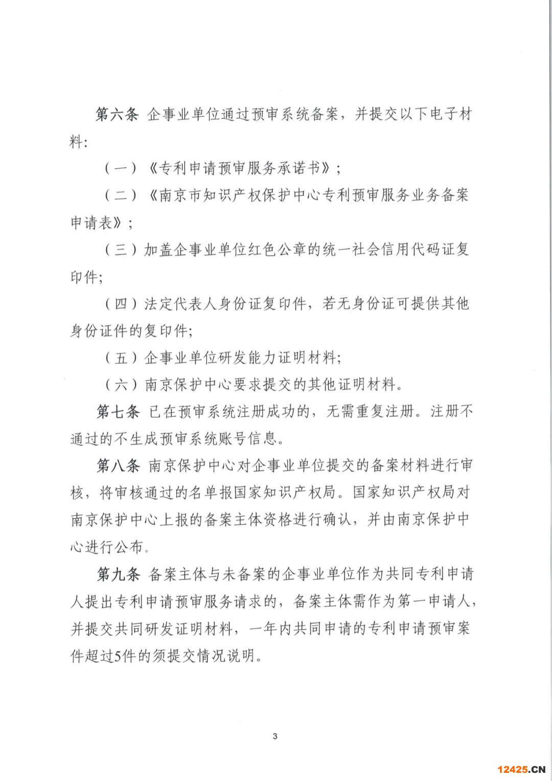 第十二條對(duì)存在以下情況的備案主體,南京保護(hù)中心可暫停專利申請(qǐng)預(yù)審服務(wù)半年以上:(一)一年內(nèi)提交10件以上專利申請(qǐng)預(yù)審案件,且不合格比例超過50%的:(二)一年內(nèi)有國家知識(shí)產(chǎn)權(quán)局認(rèn)定為非正常專利申請(qǐng)且申訴未通過的;(三) 通過南京保護(hù)中心預(yù)審后授權(quán)的發(fā)明專利維持年限不足2年的;(四)干擾或不配合專利申請(qǐng)預(yù)審相關(guān)工作的。
