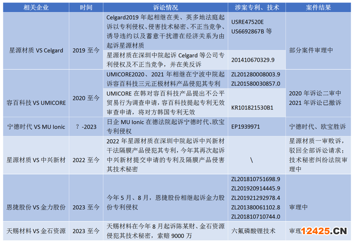 目前,國內(nèi)知名企業(yè)在鋰電池上游遭遇的專利訴訟大多發(fā)生在正極材料、隔膜和電解液領(lǐng)域。如在正極材料領(lǐng)域比利企業(yè)UMICORE相繼對當(dāng)升科技、容百科技等企業(yè)發(fā)起專利訴訟,不過UMICORE大多以失敗告終。