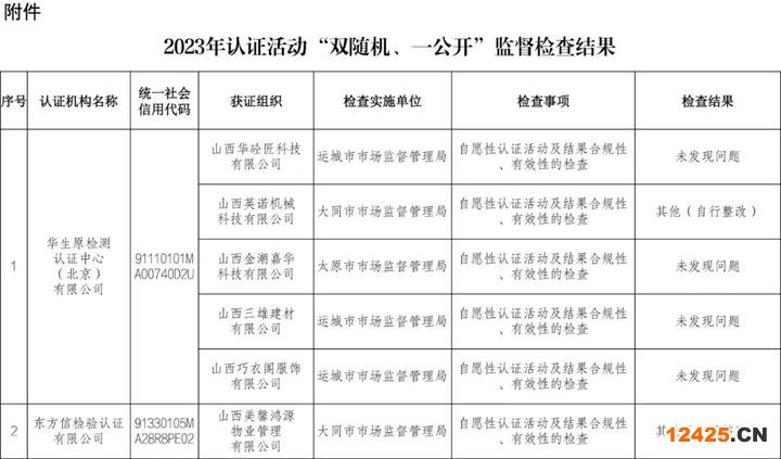 山西省市場監(jiān)督管理局2023年認證活動“雙隨機、一公開”監(jiān)督檢查結果公示