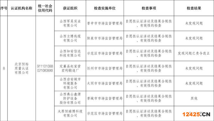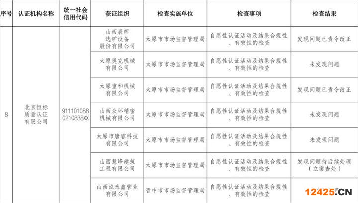 近日,山西省市場監(jiān)管局發(fā)布2023年認證從業(yè)機構“雙隨機、一公開”檢查結果通報,共涉及9家認證機構。