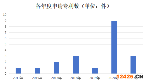 從申請時間來看,20件金獎專利為2011年-2021年申請,其中有9件專利于2020年申請,2018年和2021年各有3件申請專利獲獎。從專利維持時間來看,本屆金獎專利相對“年輕”,尤其是2020年之后申請的專利更是占到了專利金獎的60%。