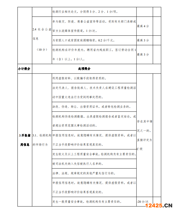 (三)檢測(cè)機(jī)構(gòu)可以通過(guò)網(wǎng)上主動(dòng)申報(bào)其抗震救災(zāi)、吸納就業(yè)、從事社會(huì)公益等良好信用信息,提交相關(guān)證明材料,經(jīng)住房城鄉(xiāng)建設(shè)主管部門審核后予以采集、記錄。