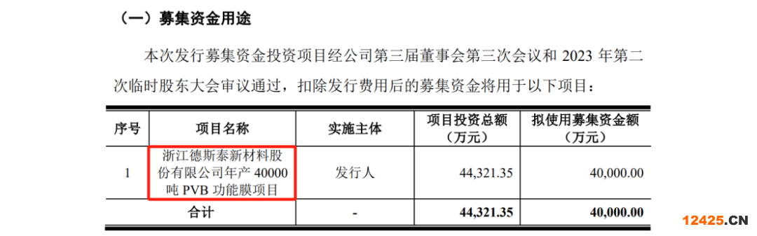 在產(chǎn)能方面,美國首諾公司一馬當(dāng)先,德斯泰新材(5.5萬噸)的現(xiàn)有產(chǎn)能則與積水化學(xué)(5.7萬噸)相近。德斯泰新材表示,截至2023年6月底,其在國內(nèi)PVB廠商中屬于頭部企業(yè)。在本次IPO中,德斯泰新材擬募集資金44321.35萬元,投入德斯泰公司年產(chǎn)40000噸PVB功能膜項(xiàng)目??梢姡滤固┕居?jì)劃進(jìn)一步擴(kuò)大PVB產(chǎn)能。
