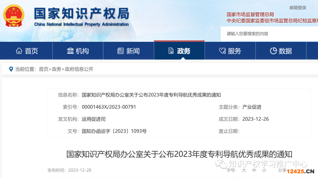 國家知識產權局辦公室 2023年12月26日