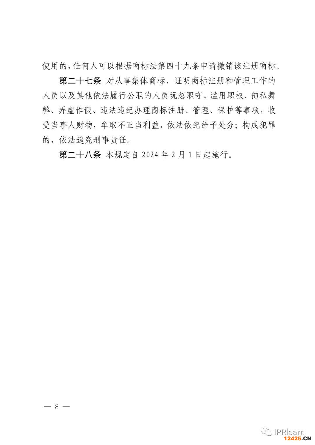 《集體商標、證明商標注冊和管理規(guī)定》共28條。主要內(nèi)容如下: