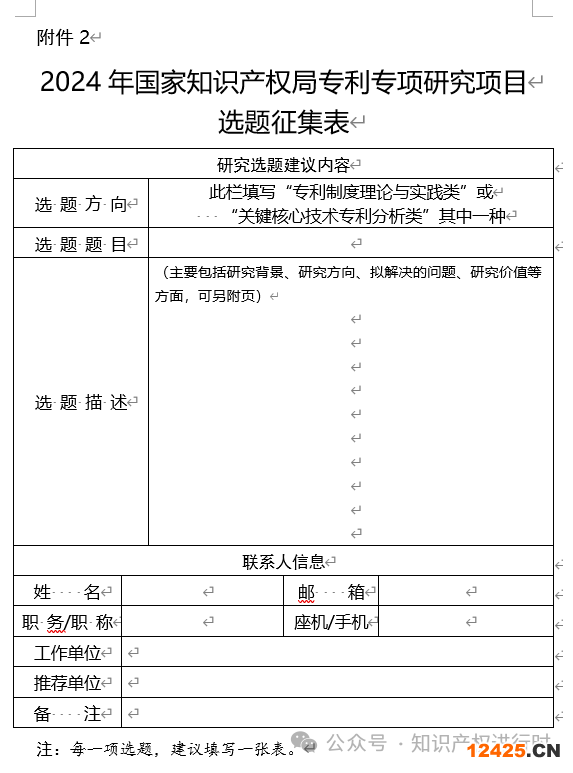 國家知識(shí)產(chǎn)權(quán)局辦公室關(guān)于征集2024年度國家知識(shí)產(chǎn)權(quán)局課題研究項(xiàng)目選題建議的函