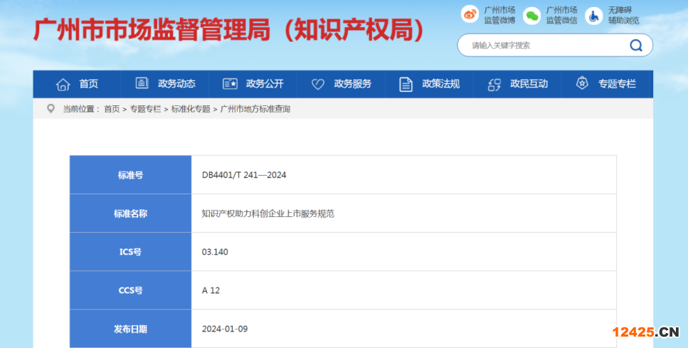 1月9日,廣州市市場監(jiān)督管理局(知識產權局)牽頭制定的《知識產權助力科創(chuàng)企業(yè)上市服務規(guī)范》地方標準(以下簡稱《規(guī)范》)正式發(fā)布,該標準是國內首個科創(chuàng)企業(yè)上市知識產權服務規(guī)范地方標準,將于2024年2月9日起實施。
