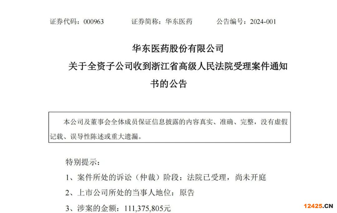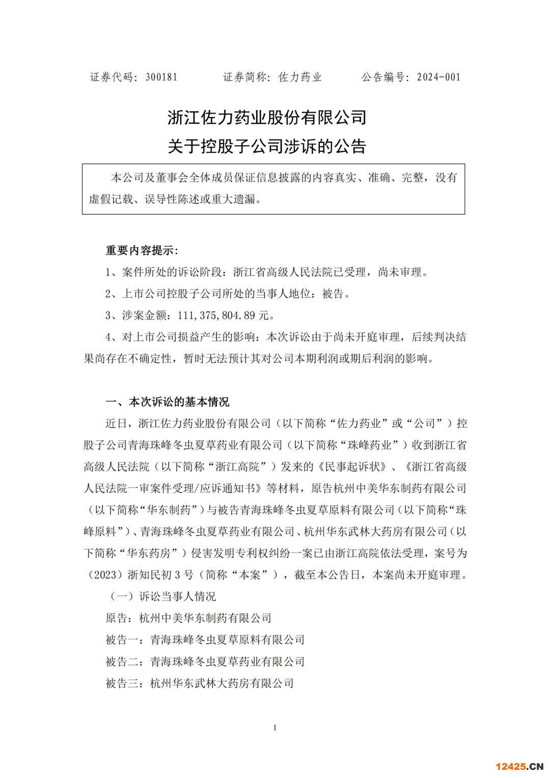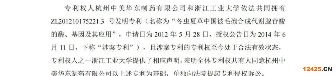 1月3日,華東醫(yī)藥(000963)公告,全資子公司中美華東于近日向浙江省高級(jí)人民法院就被告青海珠峰冬蟲夏草原料有限公司、青海珠峰冬蟲夏草藥業(yè)有限公司(下稱珠峰藥業(yè))、杭州華東武林大藥房有限公司侵害發(fā)明專利權(quán)糾紛一案提起民事訴訟。