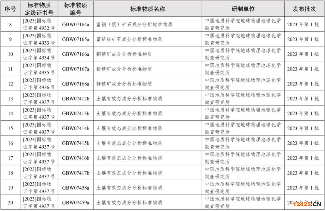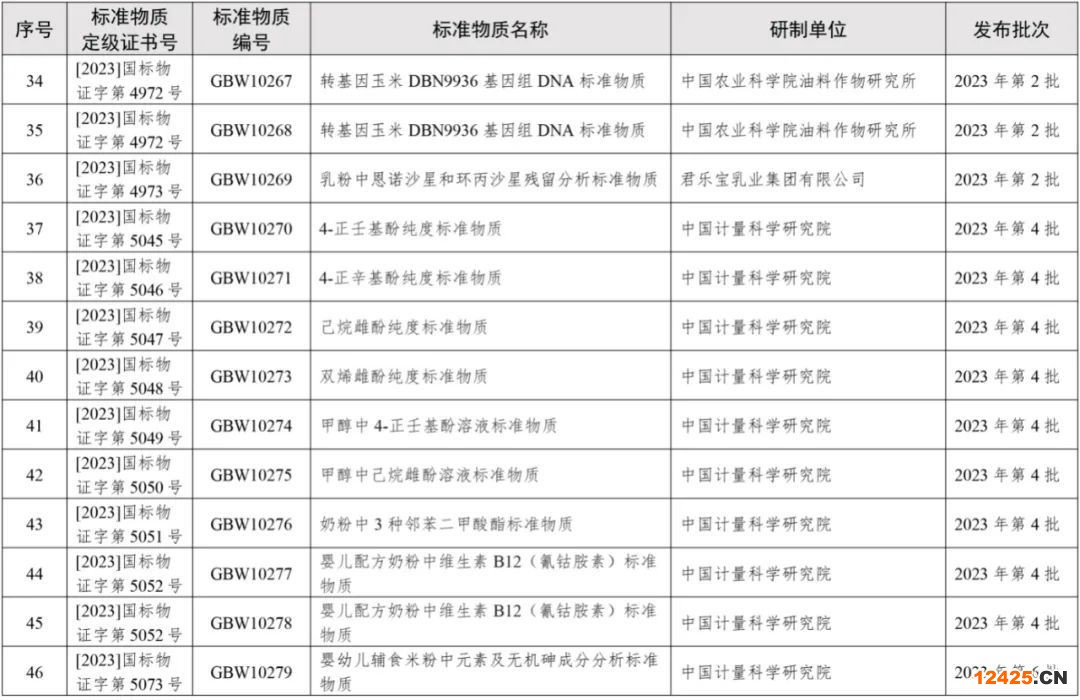 2023年批準(zhǔn)新建國(guó)家標(biāo)準(zhǔn)物質(zhì)目錄的公告