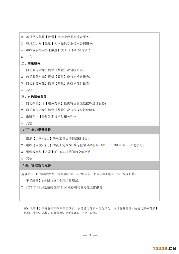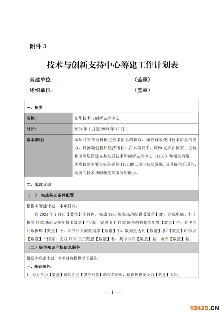 請(qǐng)各省級(jí)知識(shí)產(chǎn)權(quán)管理部門加強(qiáng)對(duì)TISC籌建機(jī)構(gòu)的指導(dǎo)和支持,按照《在華建立技術(shù)與創(chuàng)新支持中心指導(dǎo)書》(附件2),認(rèn)真做好籌建工作,并組織各籌建機(jī)構(gòu)填寫《技術(shù)與創(chuàng)新支持中心籌建工作計(jì)劃表》(附件3),于2024年2月23日前將相關(guān)材料(蓋章版和電子版)發(fā)送至聯(lián)系郵箱,并注明“XX省(自治區(qū)、直轄市)技術(shù)與創(chuàng)新支持中心籌建工作計(jì)劃表”。